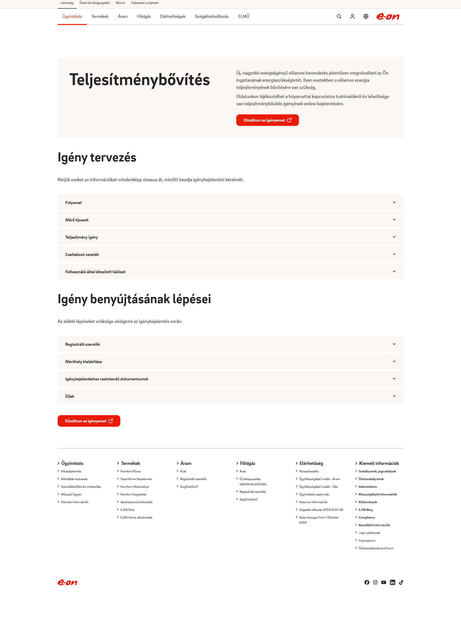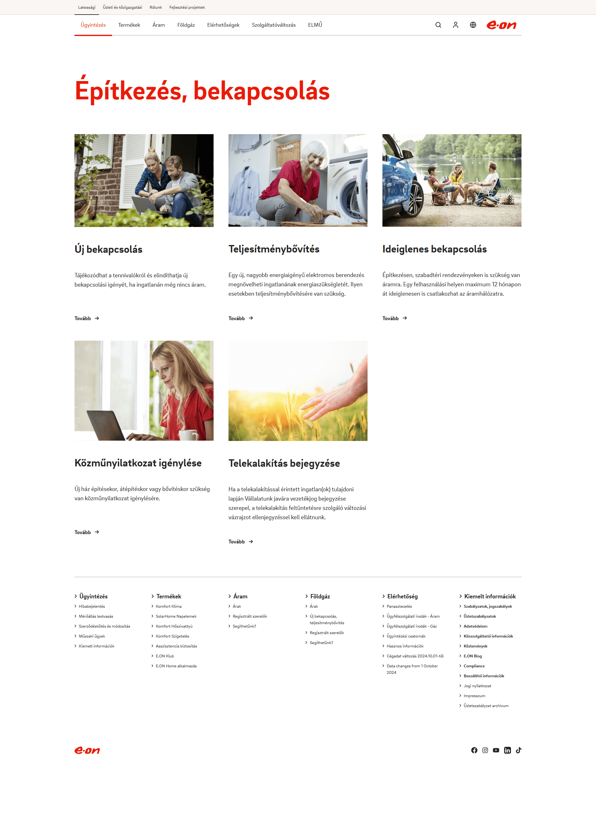 The 'New Service Application' customer journeys on e.ON Hungary's website were improved through redesigned user flows and newly created experiences.